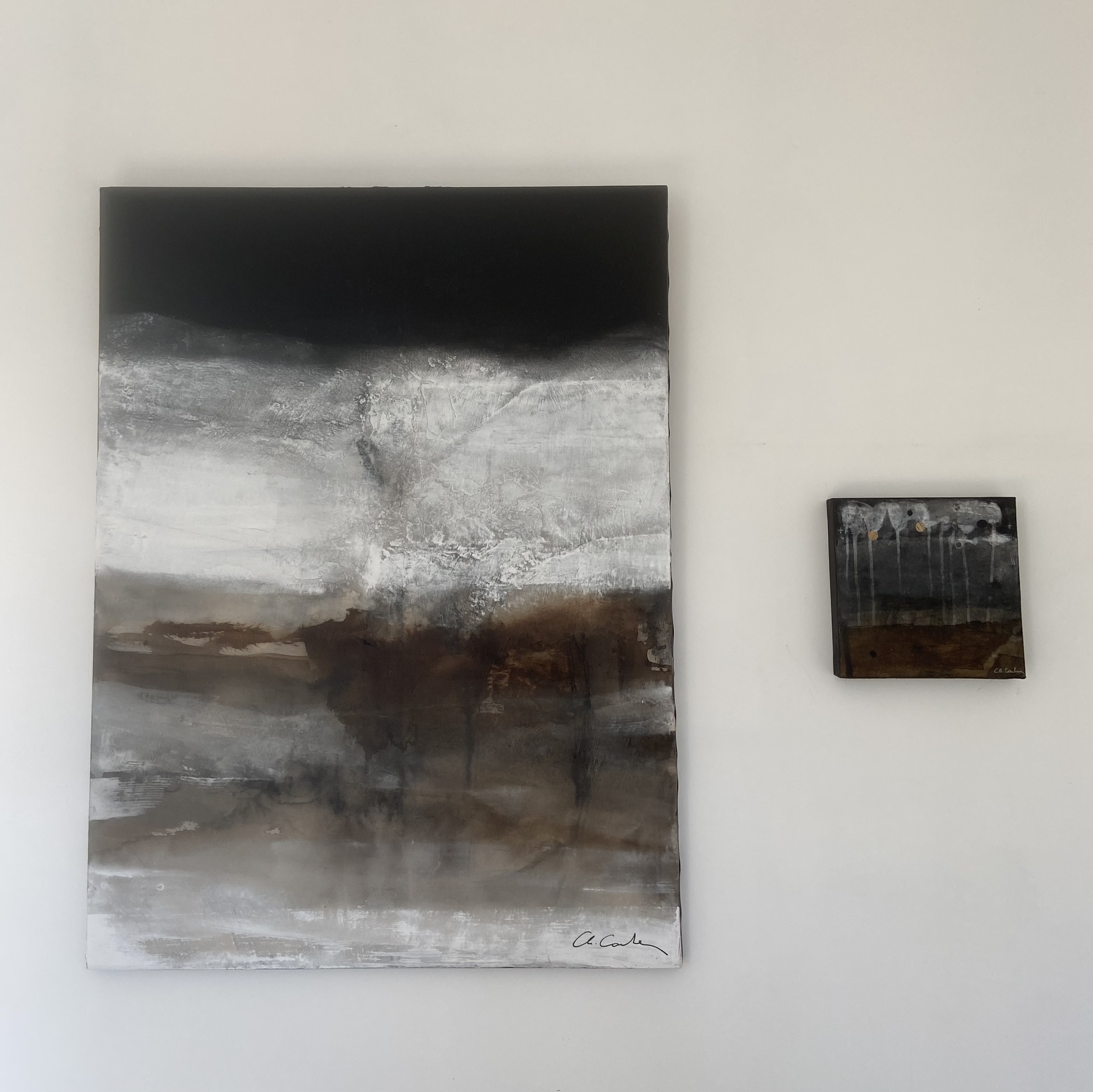 Peintures réalisées à base de pigments purs – pierre noire – poudre de marbre – collages pour certaines
